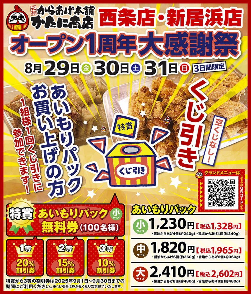 かたに商店の「西条店・新居浜店」は、オープンから1周年を迎えました。